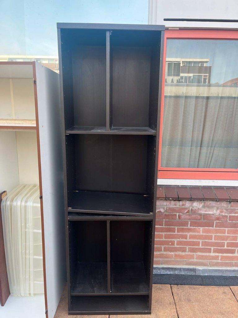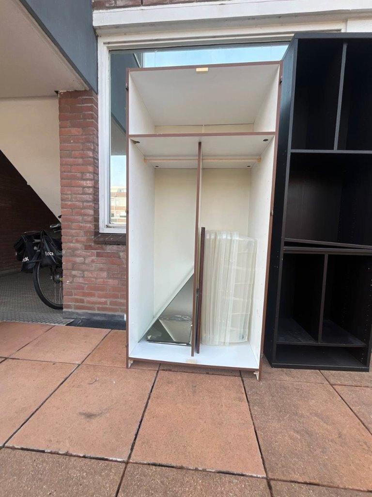 Twee kasten gratis op te halen. De kasten zijn handig voor in een berging. De witte kast heeft een metalen roede waar je eventueel jassen aan op kunt hangen. Het zijn erg stevige kasten. Voor de maten