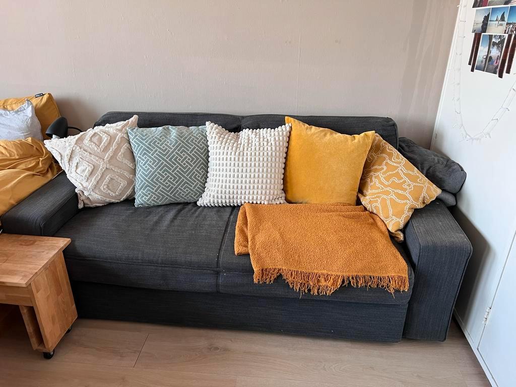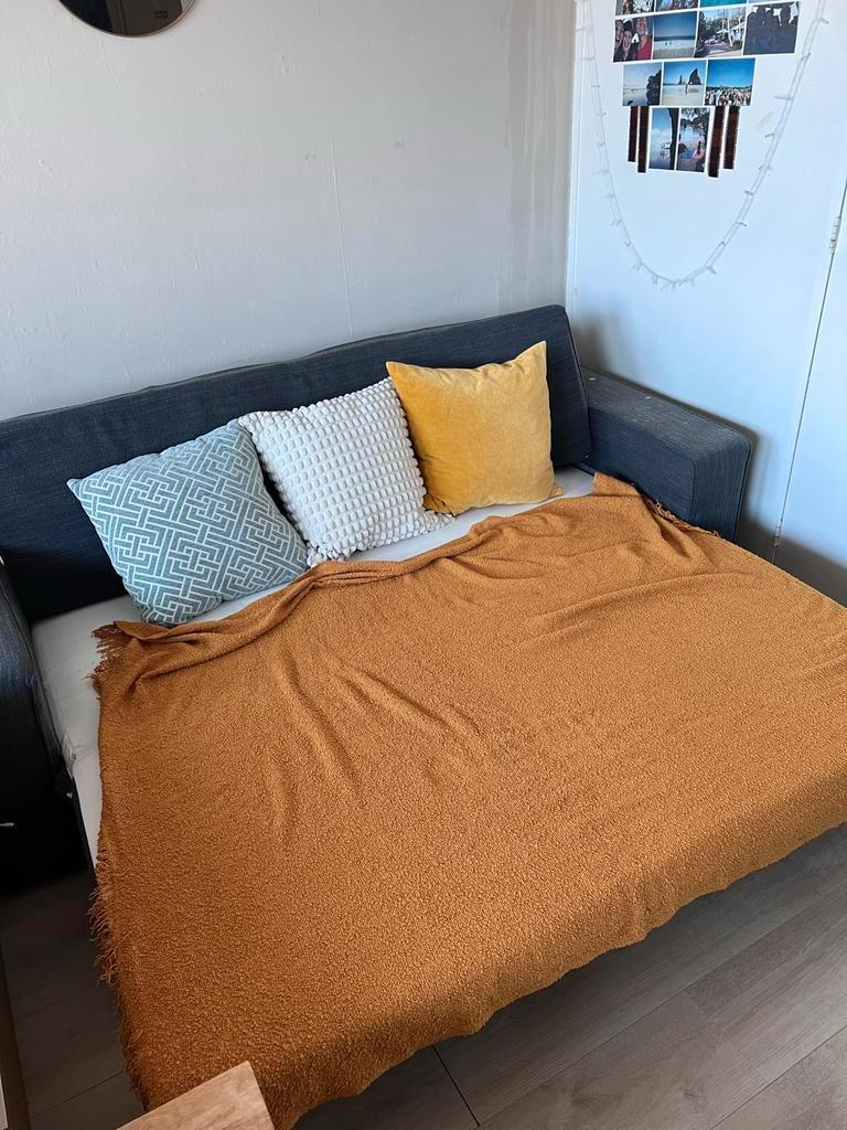Gratis ikea slaapbank voor 2 personen. De bank zit lekker en is handig als extra slaapplek. Er zitten helaas wat bleekvlekjes op de bekleding, maar deze zijn makkelijk te verbergen met een deken en si