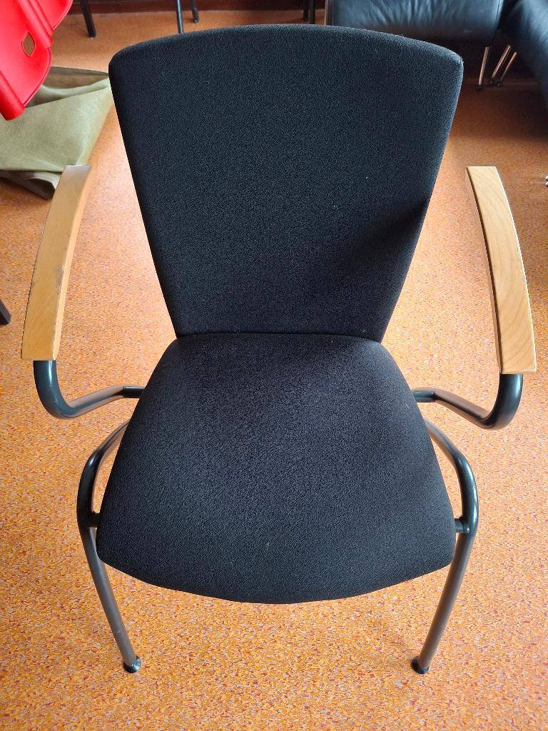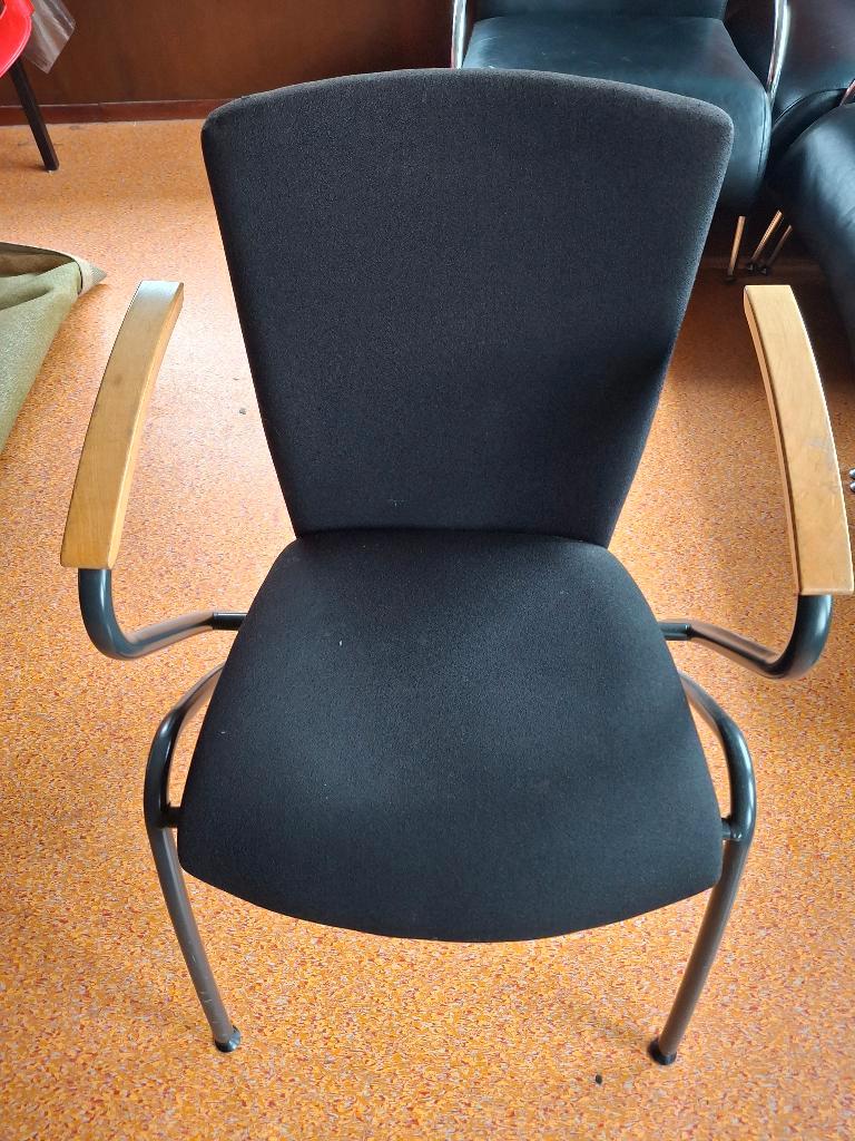 Vier zwarte stoelen van stof, gratis af te halen. Stoelen hebben wel wel beschadigingen/vlekken.