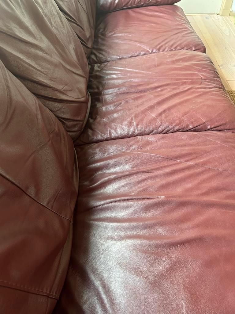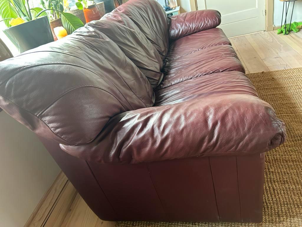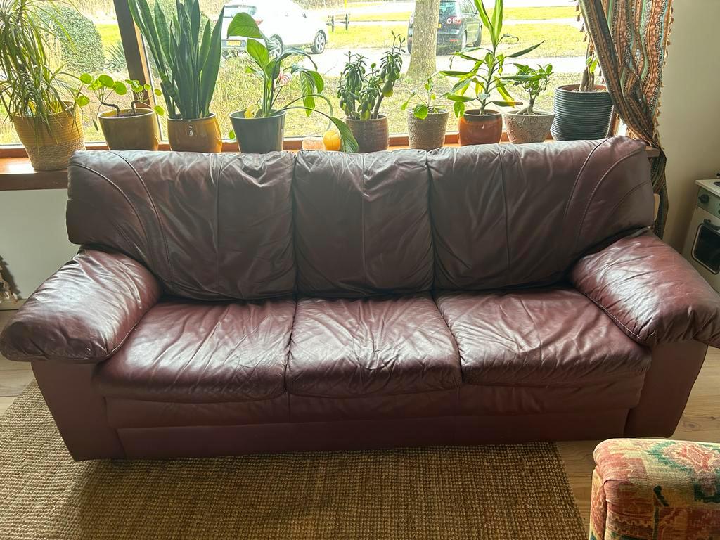 Gratis 3-zits leren bank - bruin/paars/bordeaux