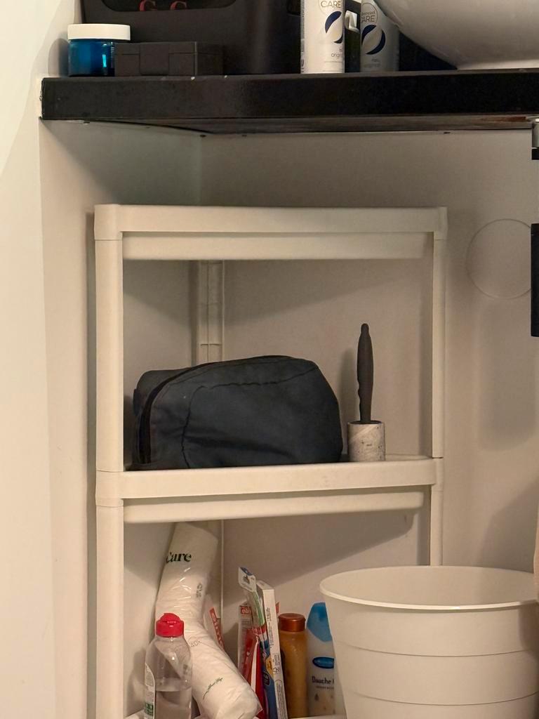 Handig ikea badkamer krukje of hoekrek. Ideaal voor kleine ruimtes. Kan gebruikt worden als zitje of als opbergruimte voor bijvoorbeeld handdoeken en toiletartikelen. In goede staat.