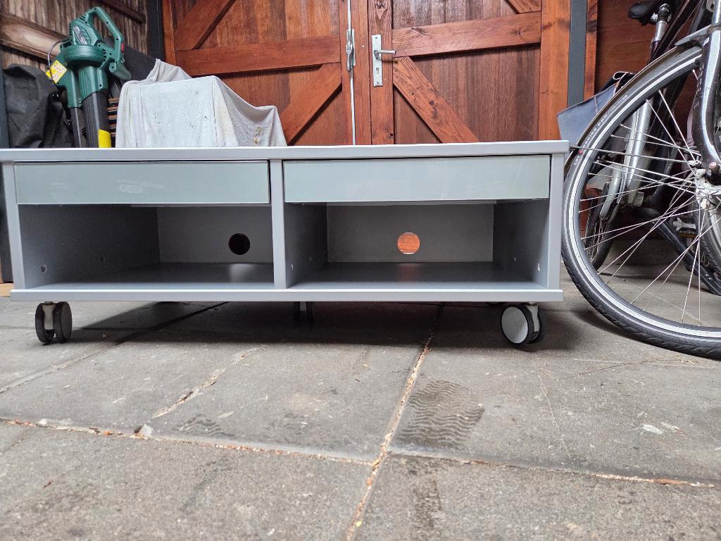 Tv-meubel, zilvergrijs 104 cm breed, 38cm hoog, 53 cm diep met wieltjes eronder gratis op te halen in beek bij nijmegen