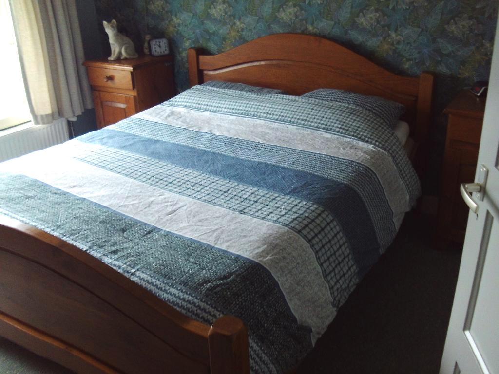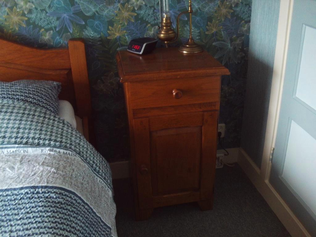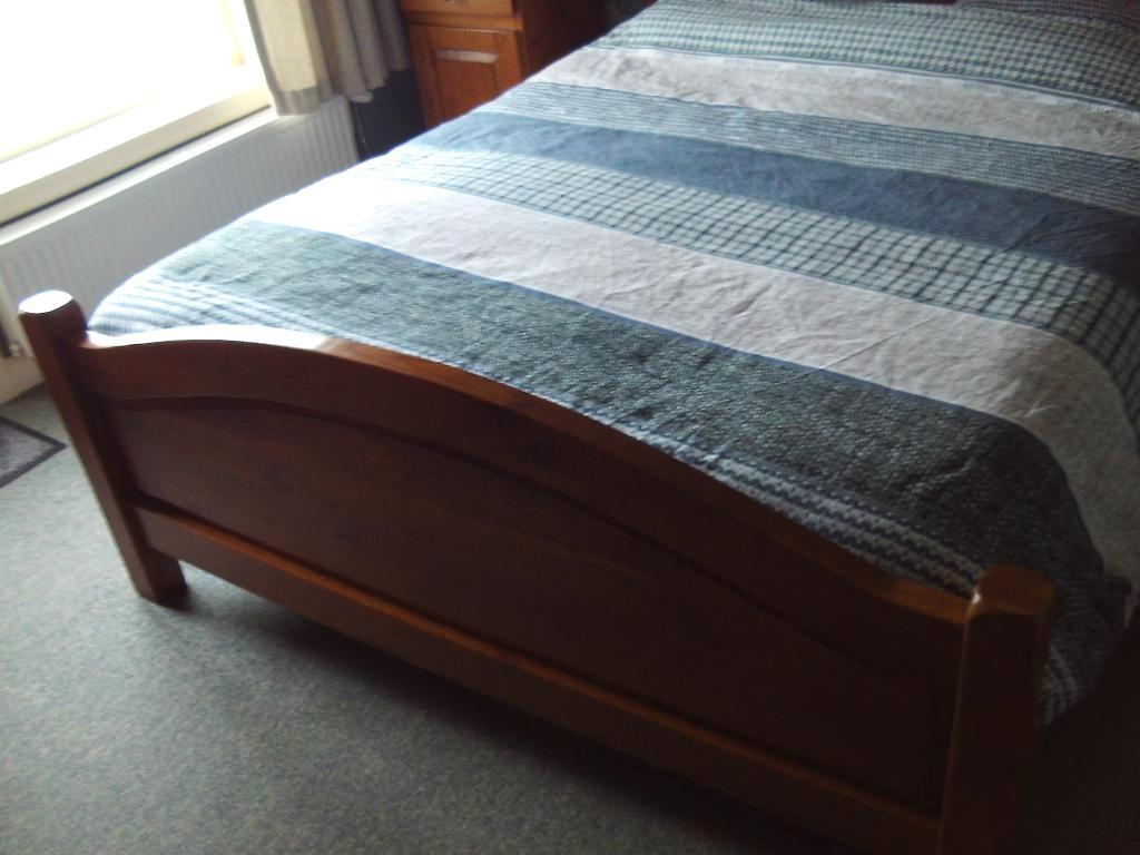 Mooi massief eiken 2 persoons bed 160 cm./200 Cm, en 2 nachtkastjes. (Komt van meubelfabriek de paal uit schijndel). Zonder beschadigingen.