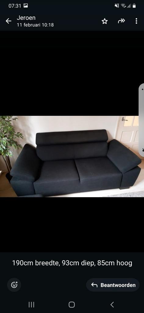 Mooie zwarte bankstel met bijpassende poef. De bank is 190cm breed en 93cm diep. De poef is 125cm breed en 60cm diep. In goede staat.
