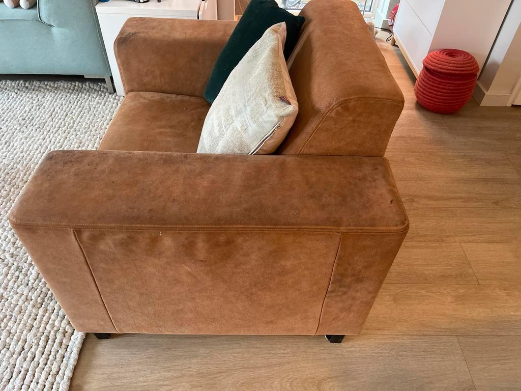 Mooie en comfortabele fauteuil. De stoel is in goede staat en biedt een fijne zitplek. Wel versiert door een stel zeer talentvolle minderjarige artiesten (zie foto’s) en vandaar gratis op te halen. Id