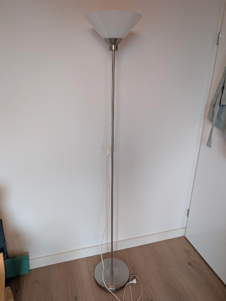 Staande lamp ikea kroby max. 150W werkt naar behoren. 180Cm hoog. Gratis op te halen