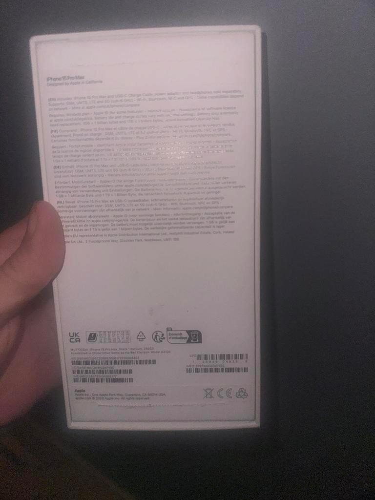 • iphone 15 pro max doosje titanium, 256gb. • iphone 15 128gb doosje zwart. • iphone 15 pro natural titanium, 128gb.