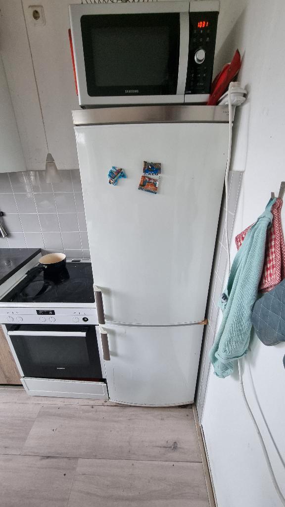 Goed werkende aeg koelkast met vriezer (3 lades) gratis op te halen! De koelkast is goed gebruikt, dus verwacht geen nieuwstaat. Het scharnier van de deur van de koelkast (zie foto 2) is kapot gegaan
