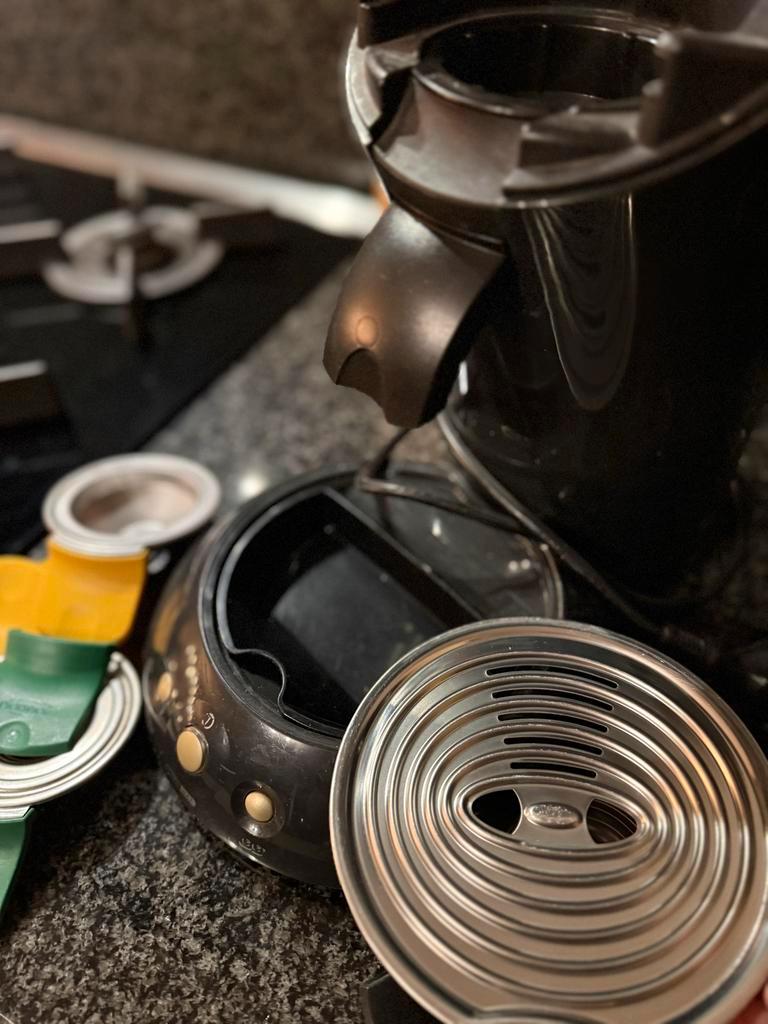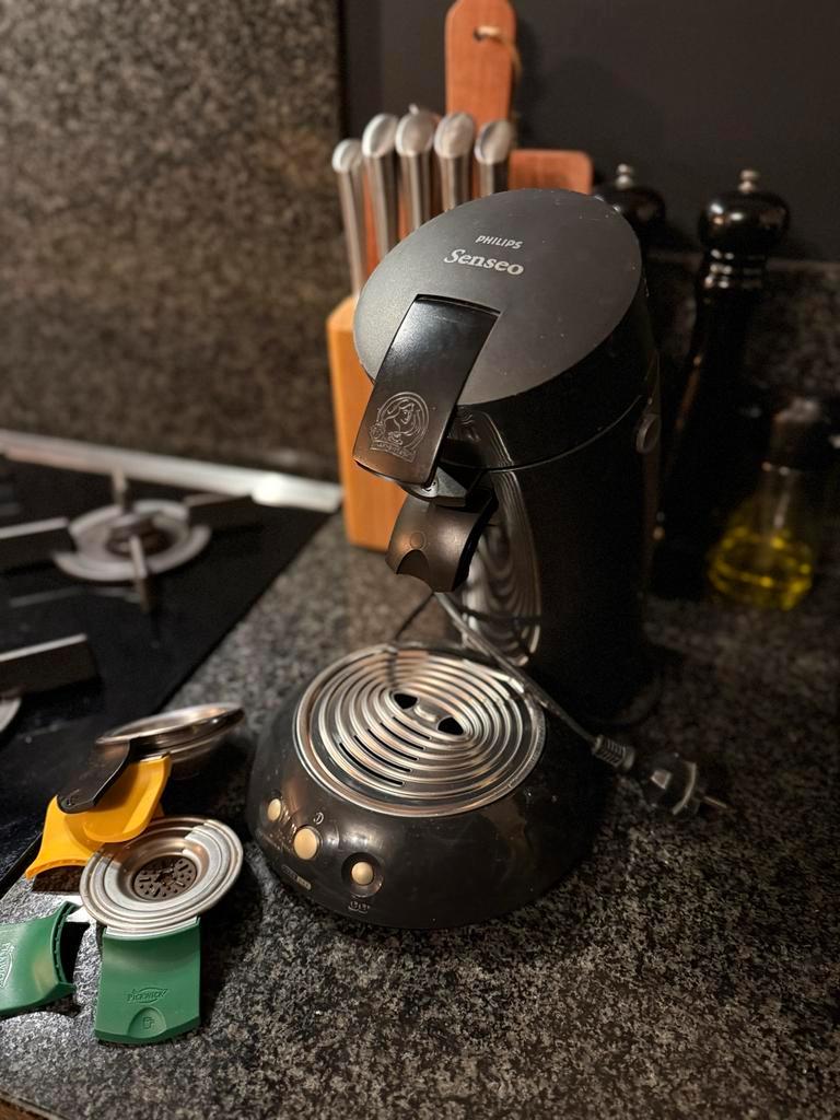 Senseo koffiezetapparaat donkergrijs / zwart. Het apparaat is gebruikt, maar werkt nog naar behoren. Ideaal voor snelle en eenvoudige koffiebereiding met senseo-pads. Inclusief de onderdelen die op de