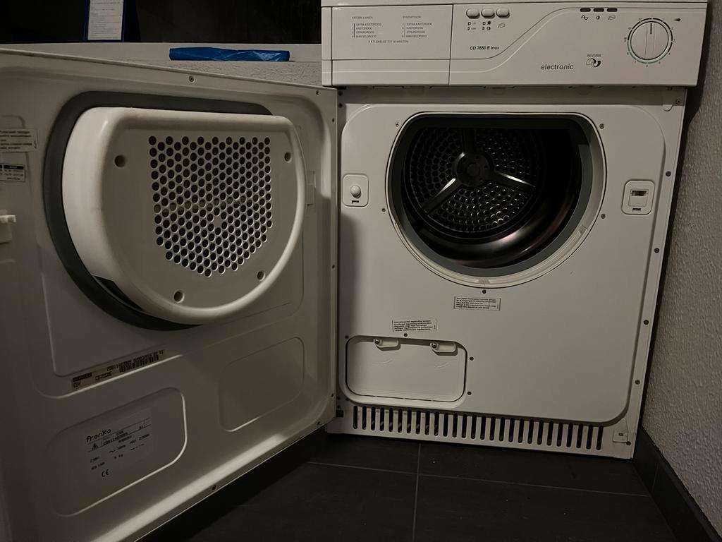 Droger met verschillende standen. Kan zowel afvoeren via een slang als met een ingebouwde opvangbak. Past helaas niet meer in het nieuwe huis. Werkt nog goed! Hoogte: 84,5 cm lengte: 60 cm diepte: 56