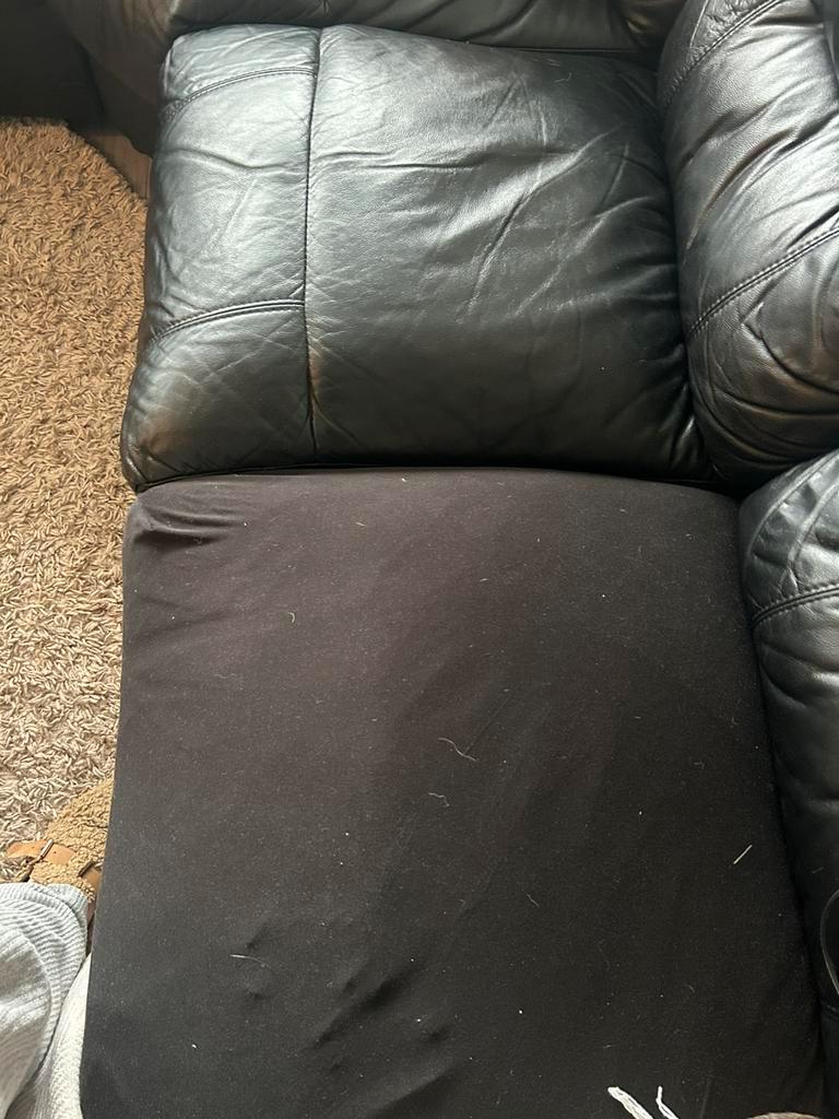 Grote leren hoekbank zwart. Afmetingen ca. 2,8 M bij 2,8 meter. Hij kan uit elkaar, 2x 2 zits, hoek en 2x 1zit. Materiaal leer, kleur zwart. Gebruikte staat maar kan zeker nog een ronde mee. Is heel c