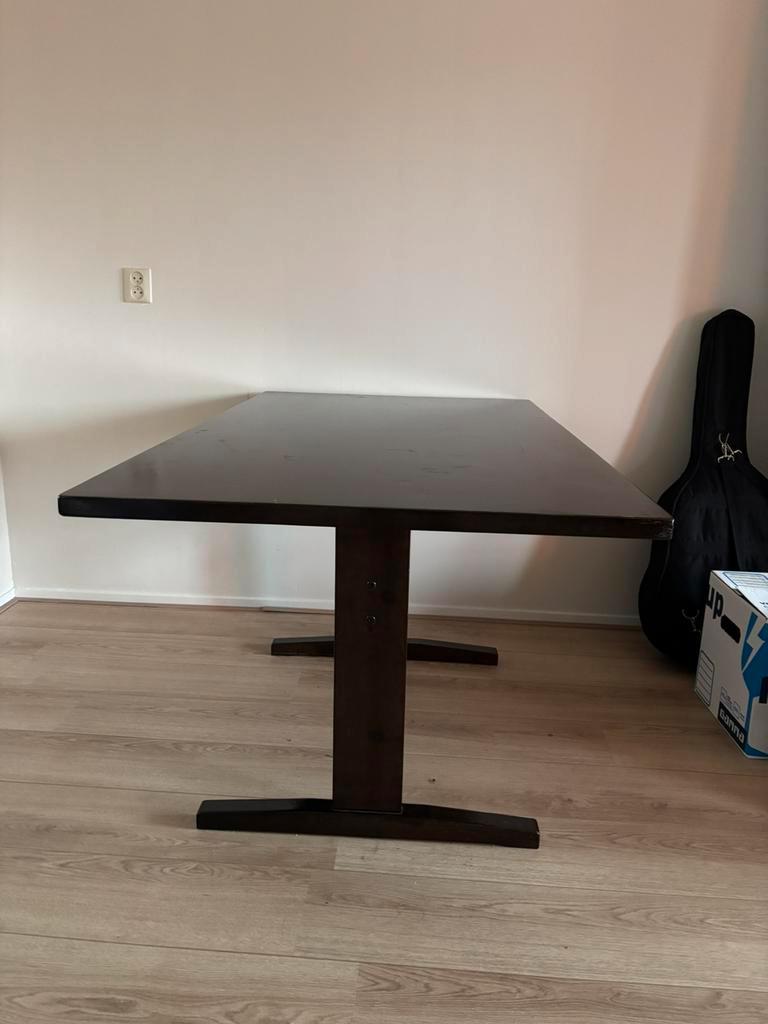 Gratis op te halen in utrecht t/m 27 februari! Eettafel van 140x80cm, geschikt voor 4 stoelen. Is zelf donkerbruin gelakt en heeft wat beschadigingen (zie foto’s). Nog heel goed te gebruiken in een st