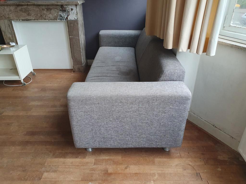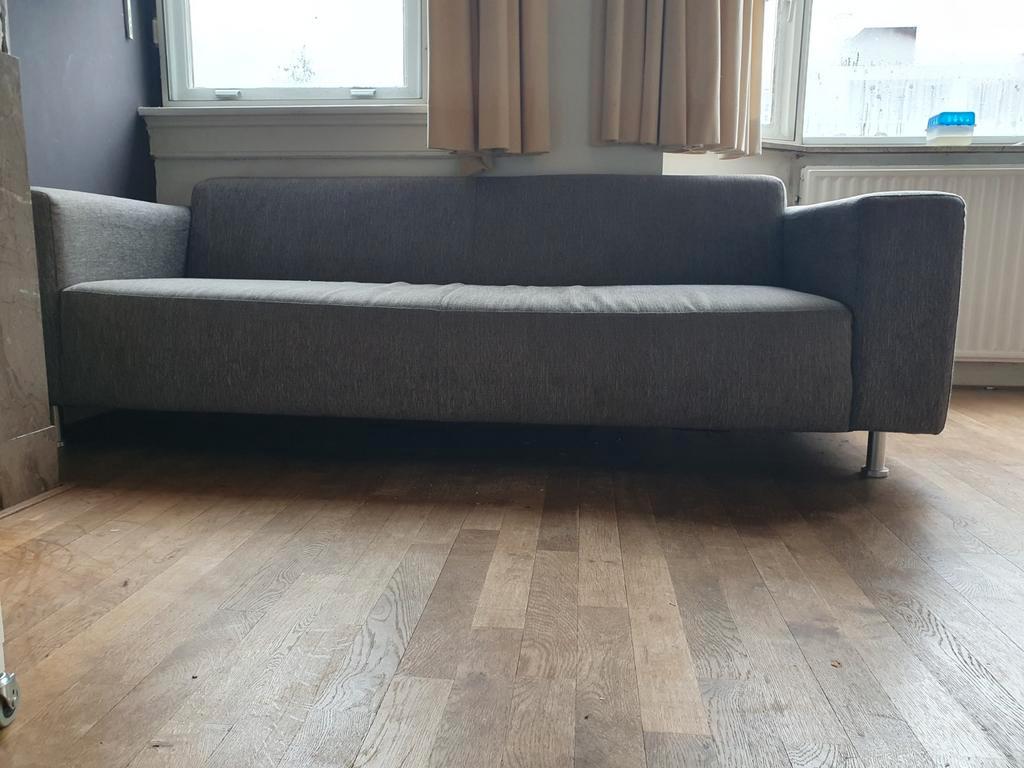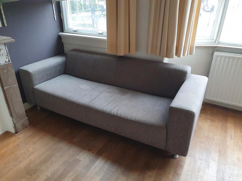 De staat van de bank is redelijk/goed. Er zitten twee vlekken op het zitvlak. Opmetingen: lengte: 220 cm breedte: 86 cm hoogte (vanaf de vloer dus incl poten) - zitvlak: 38 cm - armleuning: 62 cm - ru