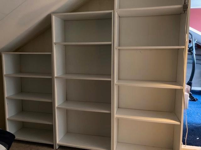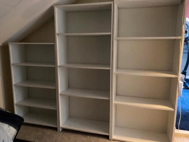 3 witte boekenkasten; kunnen afzonderlijk worden gebruikt; breedte 60, hoogte 100 breedte 60, hoogte 135 breedte 60, hoogte plusminus 170 gratis af te halen!