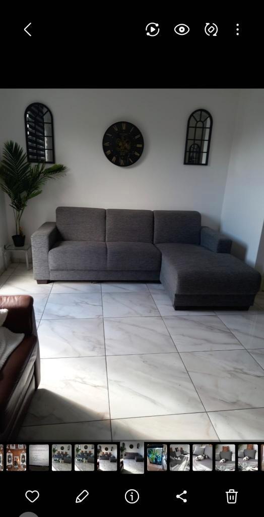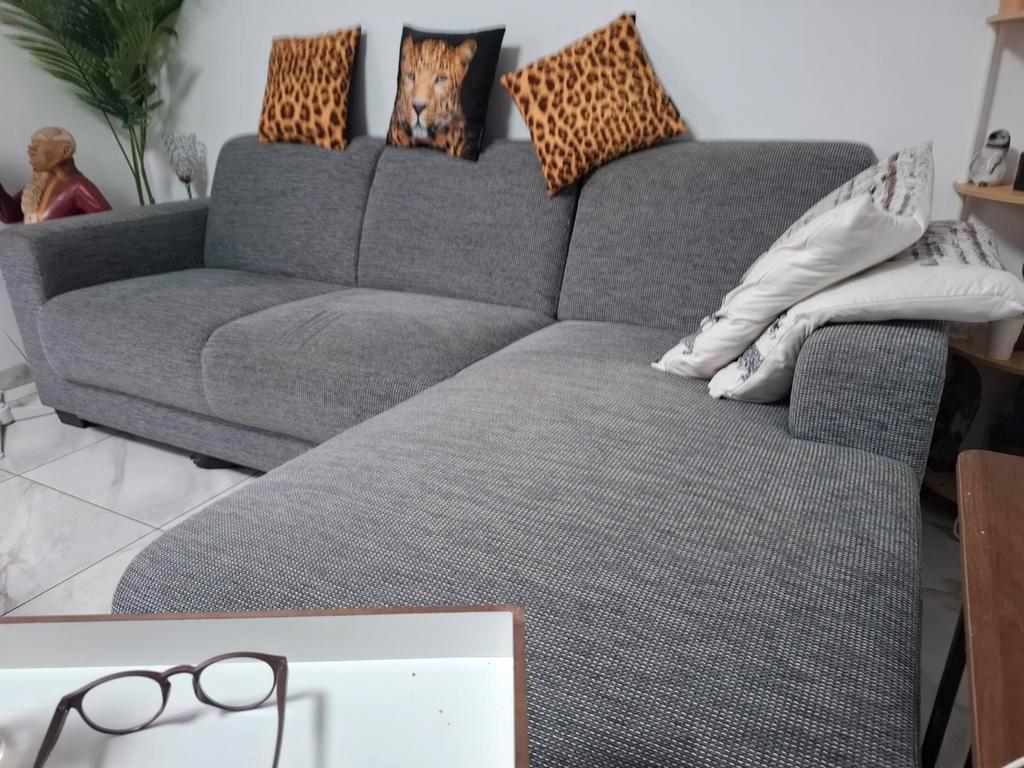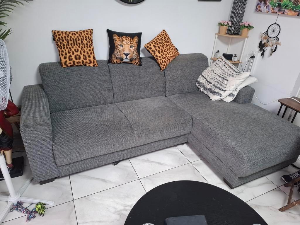 Mooie stoffen hoekbank. Grijs. Nog in prima staat. Maten zijn 2.38 Breed hoogte is 42. Korte stuk diepte is 65. Lange stuk diepte is 160. Exclusief kussens. Gratis ophalen!! Moet liefst voor zaterdag