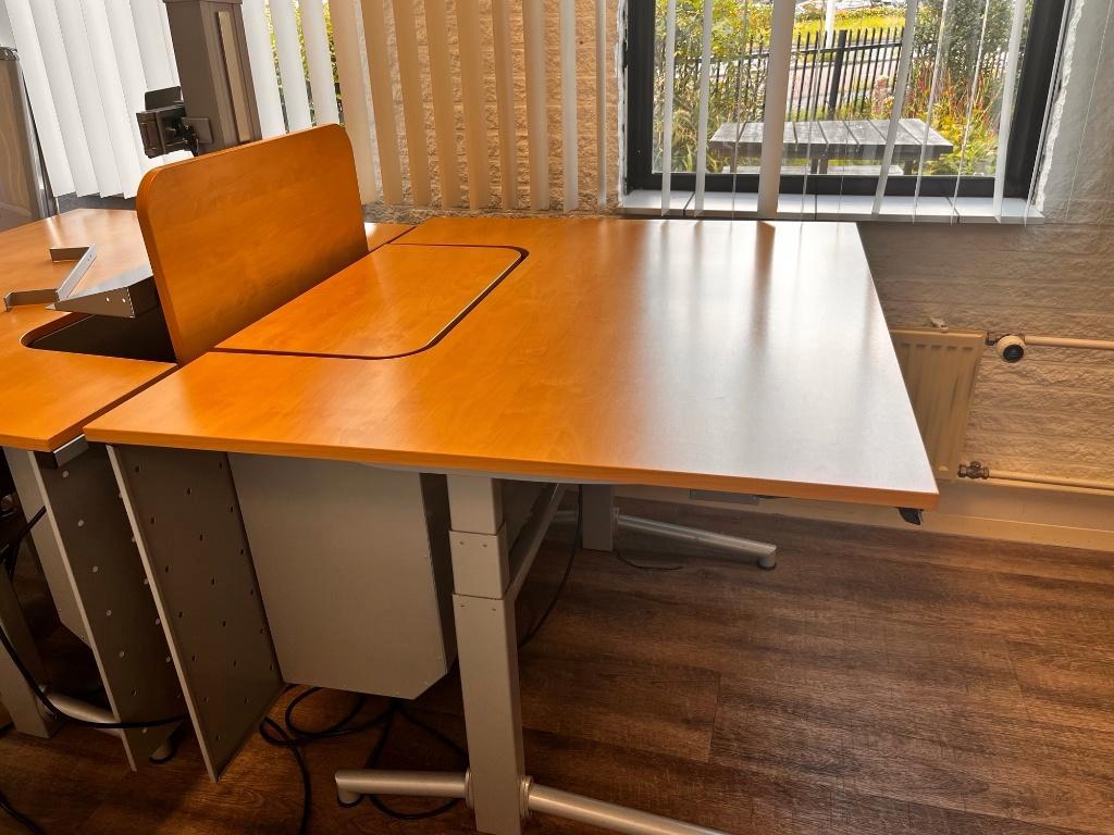 Deze bureaus zijn nog goed maar te groot en zwaar voor bij on sop kantoor. Af te halen in amsterdam noord.
