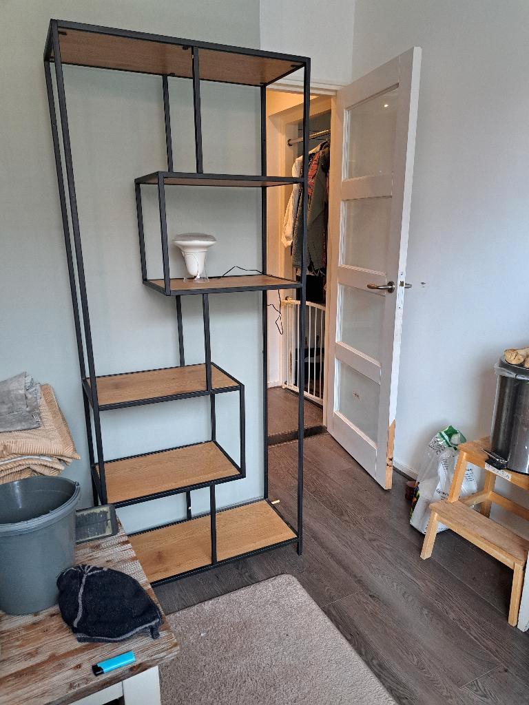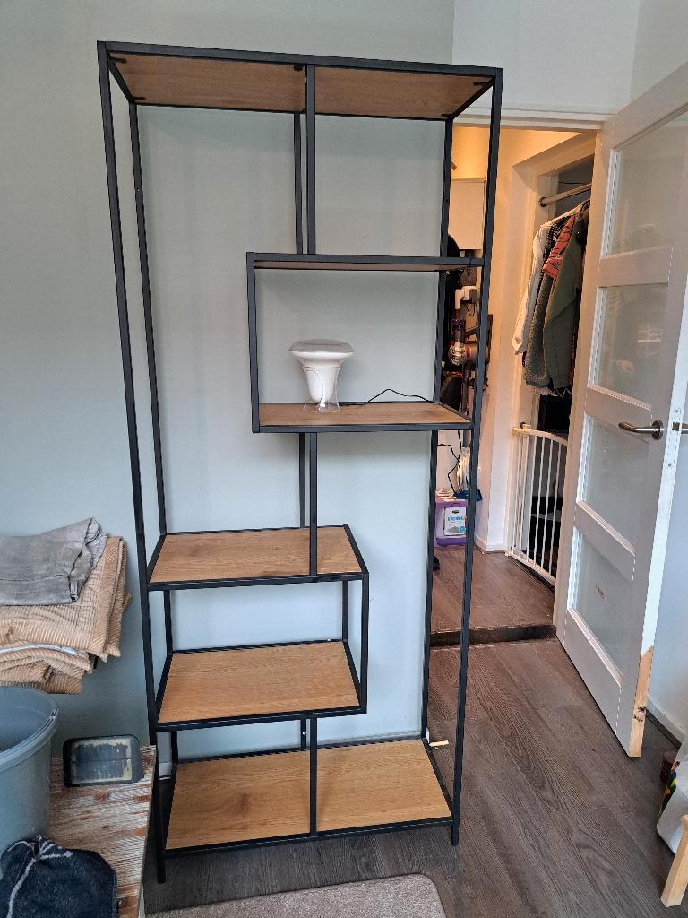 Wegen herinrichting van onze achterkamer is deze mooie vakkenkastje overbodig geworden, het geheel verkeert izgst, kleur is zwart met beukenkleurige planken, verleden jaar bij haco den haag gekocht. M