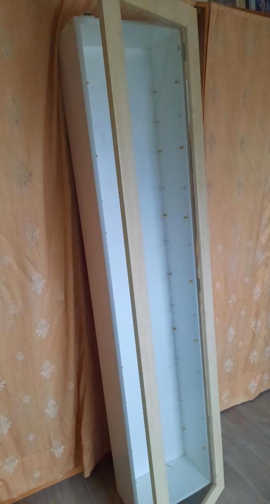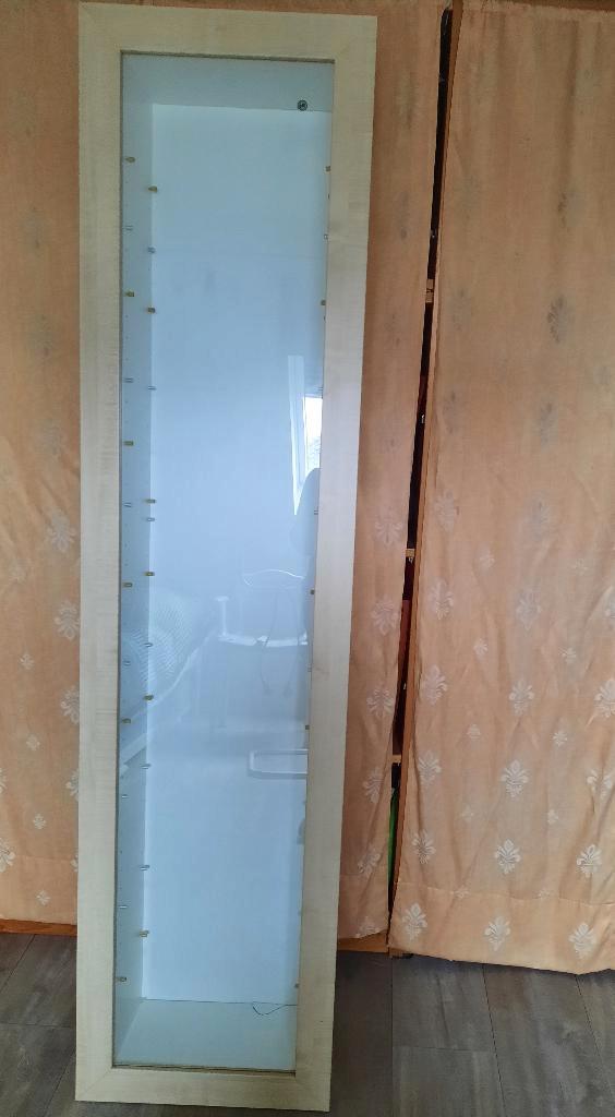 Ikea vitrinekast (hangmodel) 170 cm hoog 42cm breed 20cm diep inclusief 14 bijpassende glazen plankjes gratis af te halen