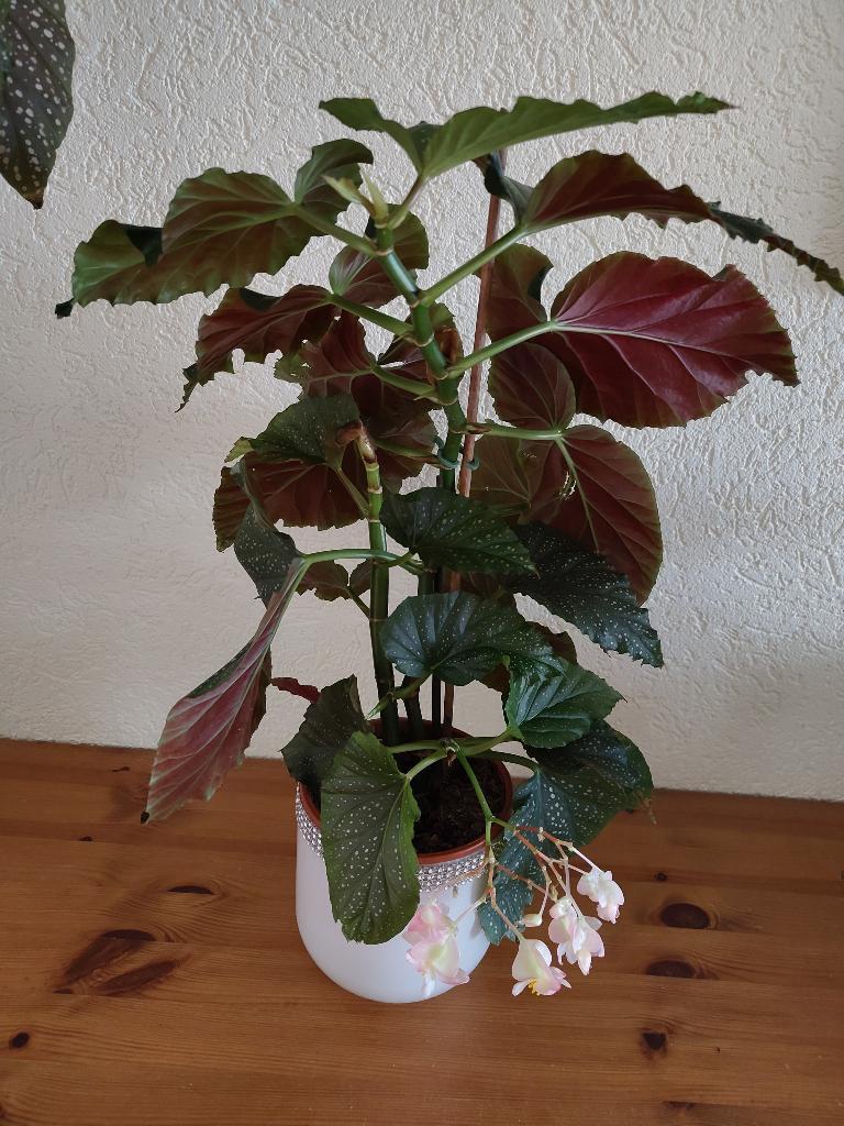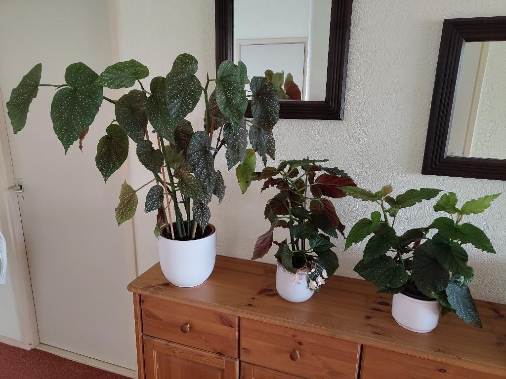 Stippenbegonia - begonia maculata raddi - 3 stuks met pot. 1 Staat in bloei met wit-rose bloempjes