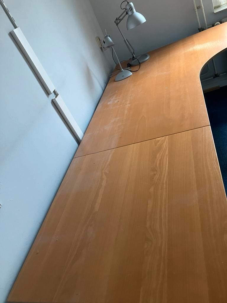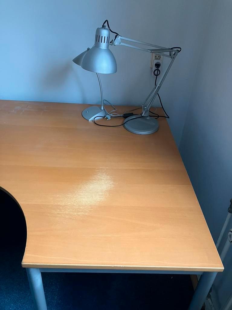 Groot hoekbureau, gratis ophalen! Gebruikt maar kan nog prima een ronde mee. Afmetingen: lengte 220 cm (bestaande uit een hoekdeel van 160 en een vierkant deel links van 80 cm) diep 80 cm links en 120