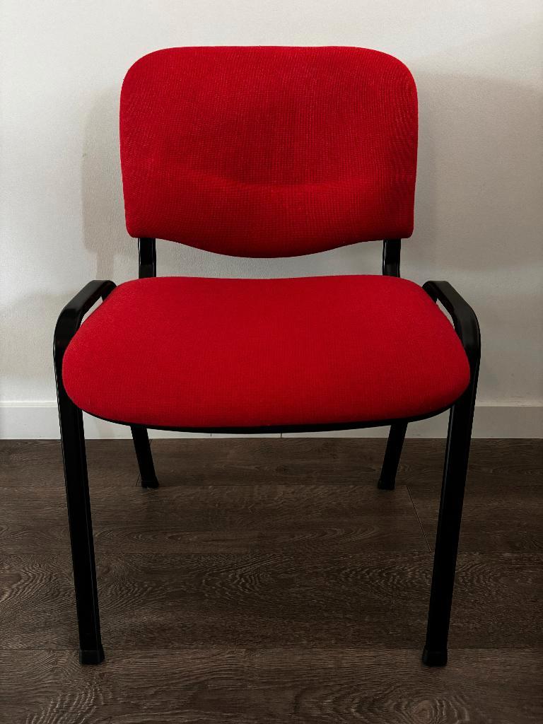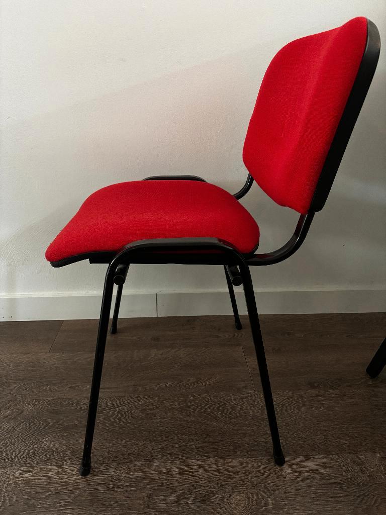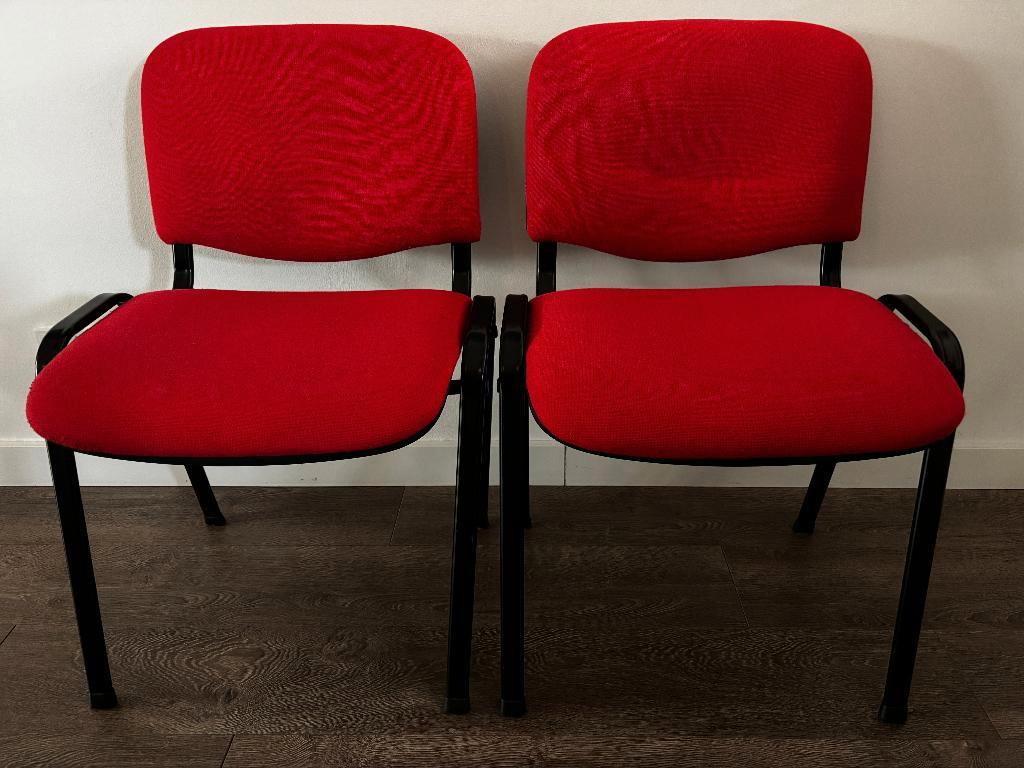 2x stoelen die je kunt gebruiken als bijzetstoelen of als vergaderstoelen. Frame: zwart stof: rood gratis op te halen.