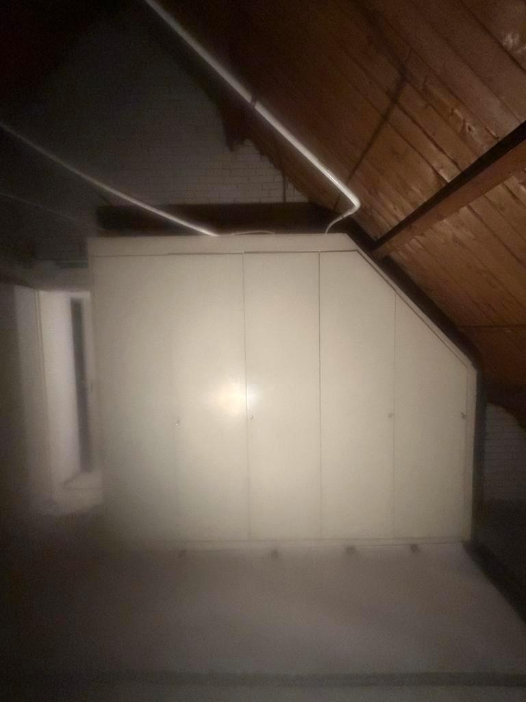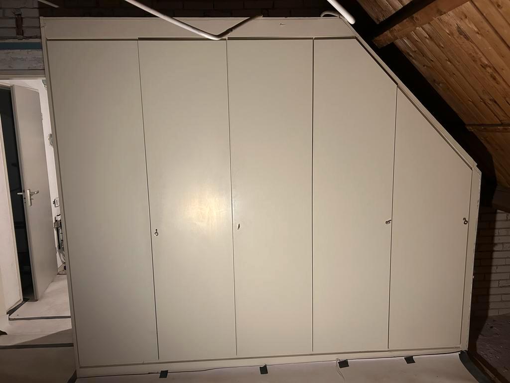 Gratis af te halen: maatwerkkast, ideaal voor onder een schuin dak. De kast is gedemonteerd en klaar om opgehaald te worden. Bekijk de schets voor de afmetingen. Perfect voor extra opbergruimte in een