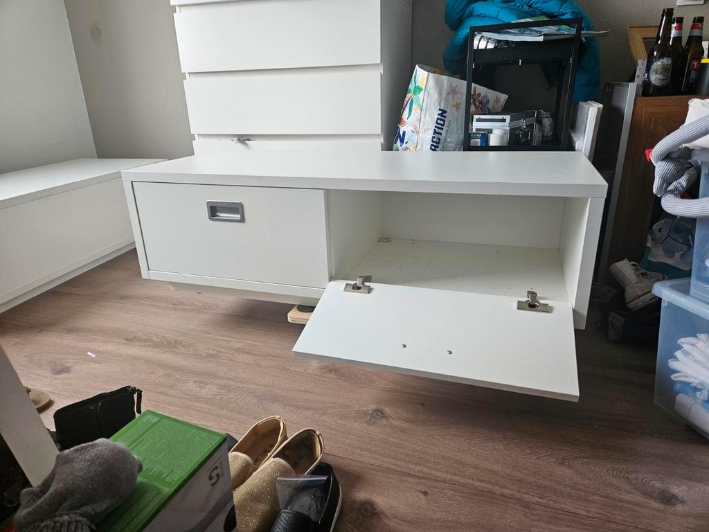 2 kastjes, wij hebben ze gebruikt als schoenenkast, 2 op elkaar. Gratis af te halen. Ze moeten wel schoongemaakt worden. 1 Is helemaal heel, het andere kastje heeft een kras bovenop.
