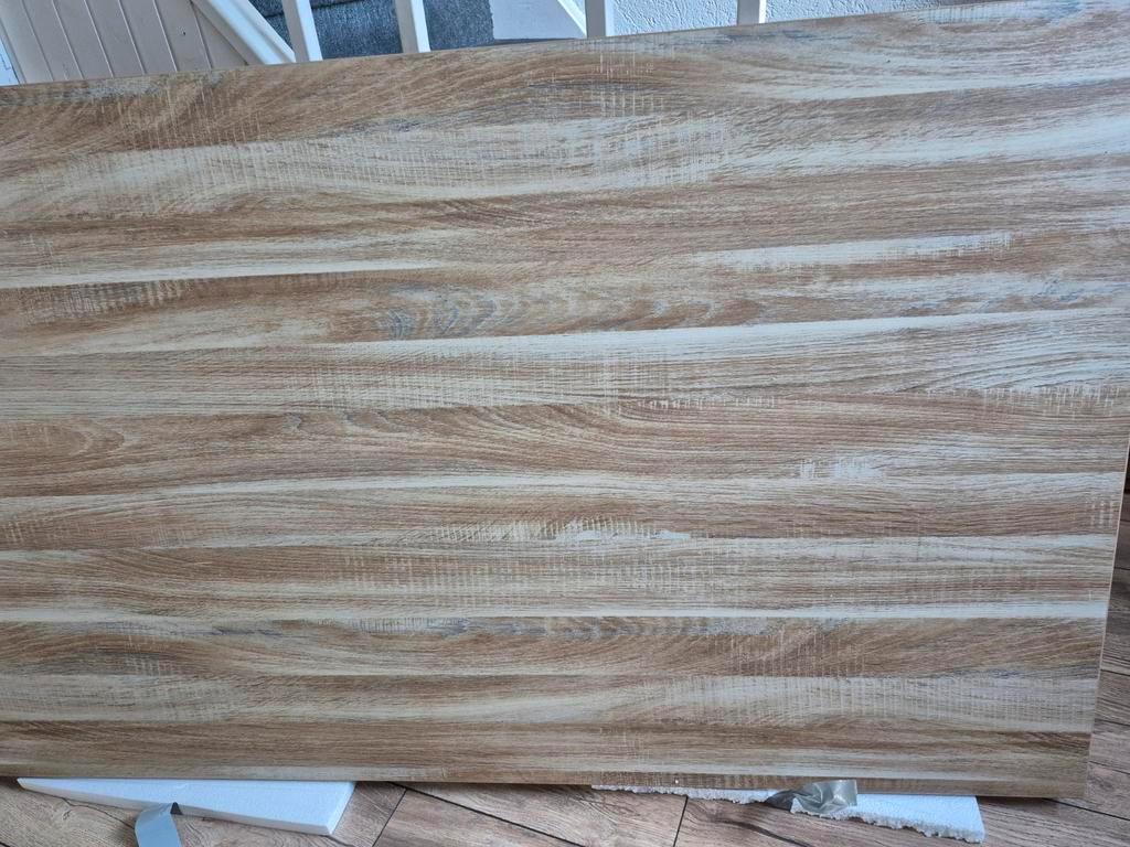 Een mooi tafelblad met afmetingen 160 cm lang, 90 cm breed en een dikte van 2,7 cm. Ideaal voor een eettafel, bureau of ander project. Het blad is in goede staat en klaar voor gebruik.