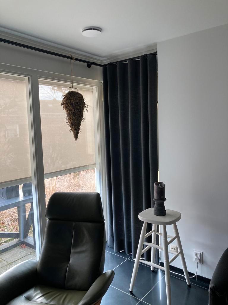 Degelijke roede met een hoek. Met wave fopgordijnen.