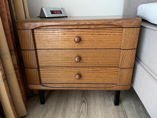 Gratis af te halen: een mooi en degelijk bed inclusief matrassen, lattenbodems en een bijpassend nachtkastje. Het bed is in goede staat en kan direct gebruikt worden. Ideaal voor een logeerkamer of st