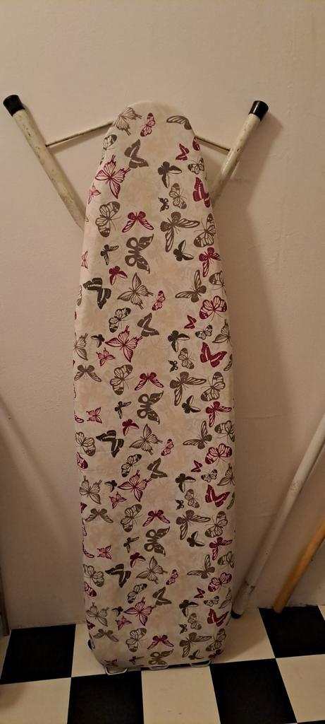 Strijkplank in gebruikte staat. Het doek heeft wat gebruikssporen, maar de strijkplank functioneert nog prima. Ideaal voor iemand die een goedkope en functionele strijkplank zoekt.