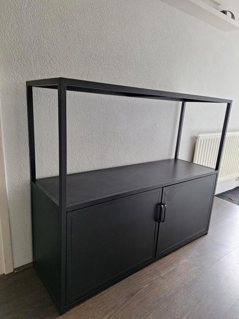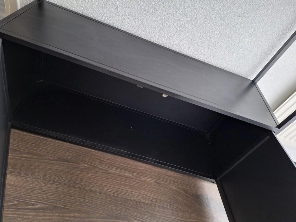 Mat zwarte kastje, mag gratis opgehaald worden (assen). Wel wat dunne krasjes her en der. Achter de deurtjes is 1 grote ruimte, dus geen planken. Let op: kastje zit in elkaar dus kan zo in de auto of