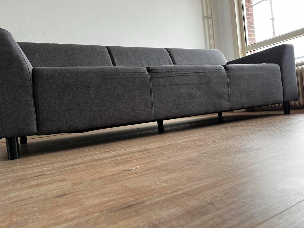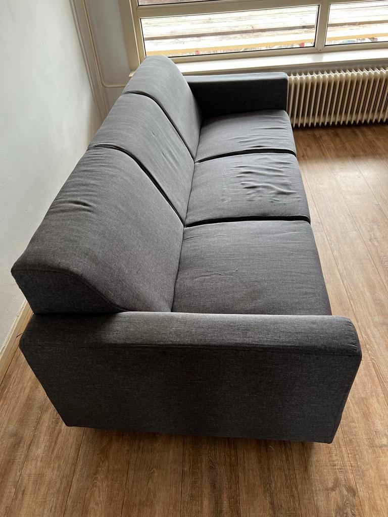 Grijze driezitsbank, gebruikt. Gratis af te halen omdat deze is achtergelaten door de vorige verhuurder. Ideaal voor iemand die een bank nodig heeft en het niet erg vindt dat deze gebruikt is. Kan een