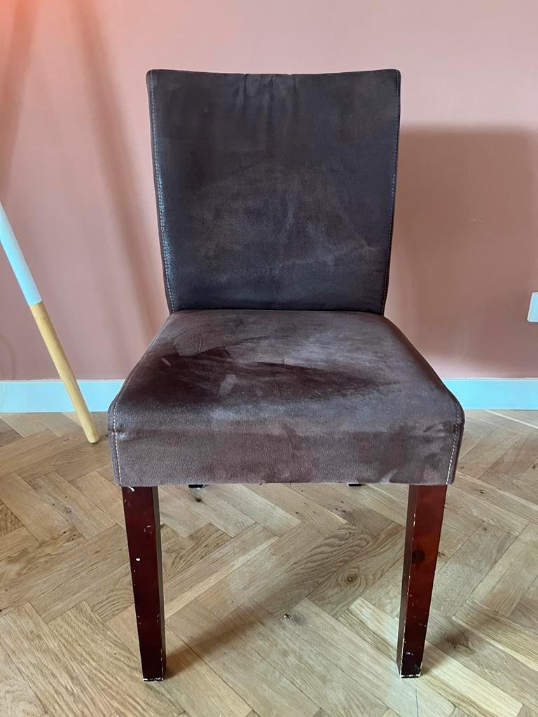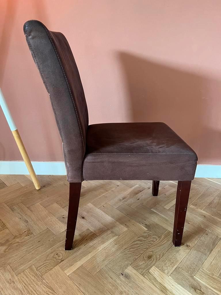 Aangeboden gratis set van 6 roodbruine velvet eetkamerstoelen. Vanwege de koop van nieuwe stoelen gaan deze weg. Zittingen zijn comfortabel en de stof zelf heeft géén gebruikssporen. Makkelijk schoon