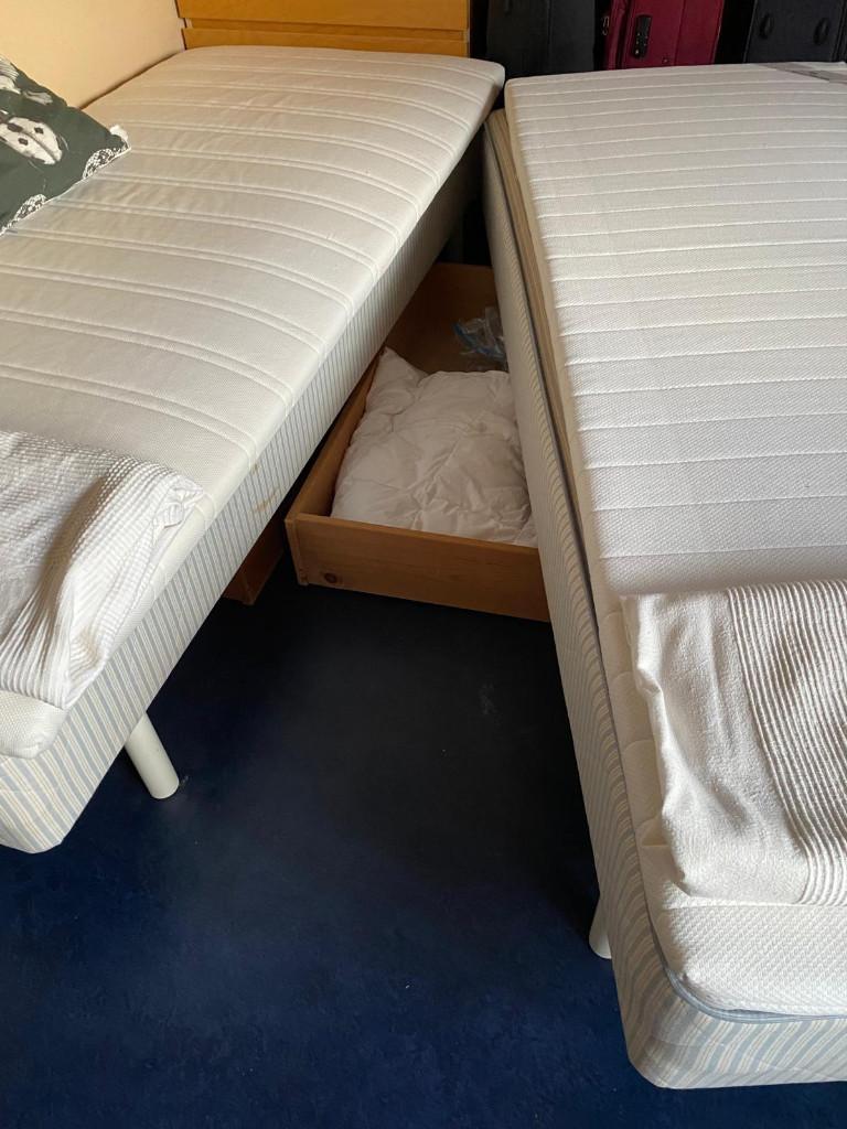 Beide bedden zijn weinig gebruikt als logeerbedden. Ze zijn inclusief 2 matras toppers. Meehelpen de bedden van boven naar beneden te verplaatsen.
