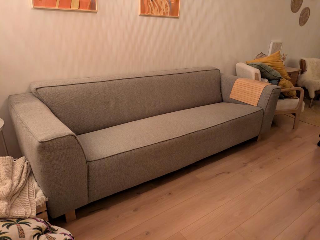 Stevige grijze 3-zits bank in gebruikte staat. Dit weekend gratis af te halen in amersfoort. Zie fotos voor de maten (+/- 245cm lang, 95cm diep en 65cm hoog). Zakt ietwat door in het midden maar kan g