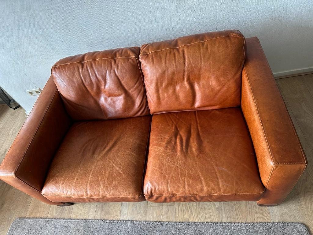 Gratis 2-zits leren bank in goede staat – zelf ophalen