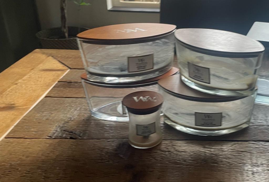 Diverse lege woodwick kaarsen potten e.a. Ideaal voor hergebruik.