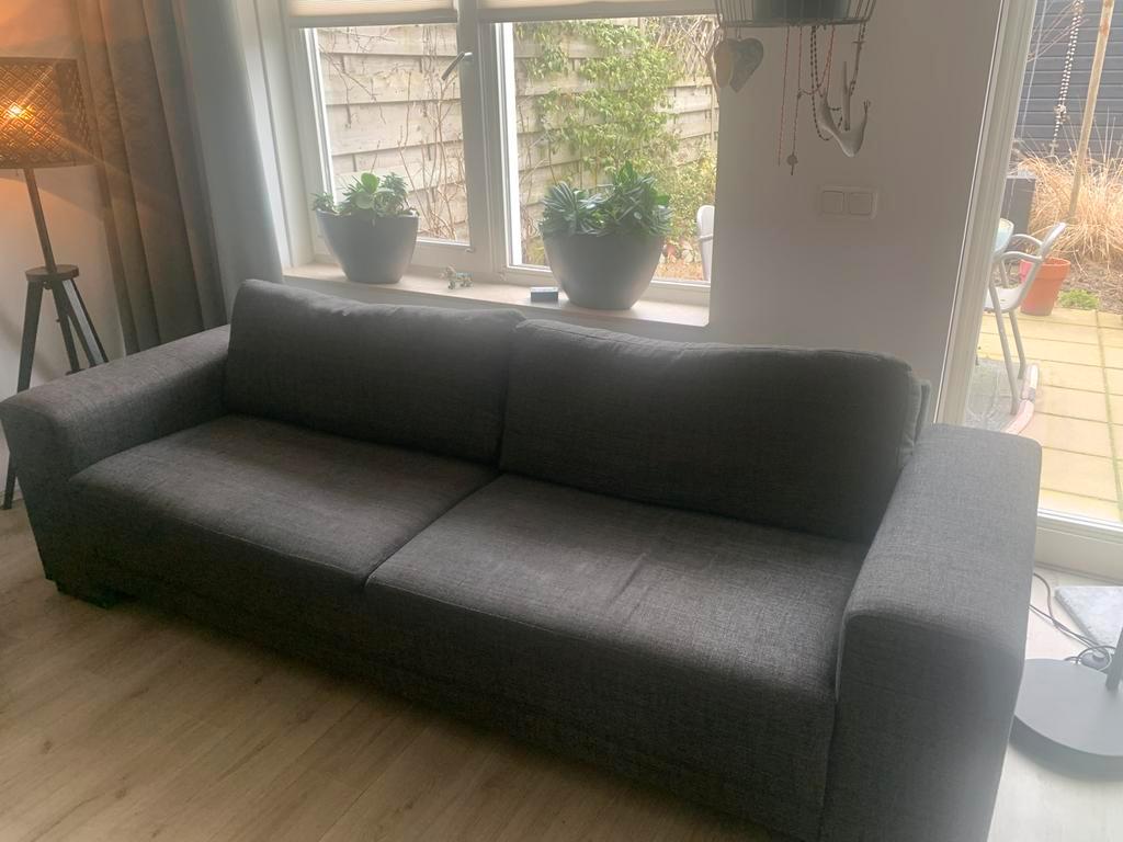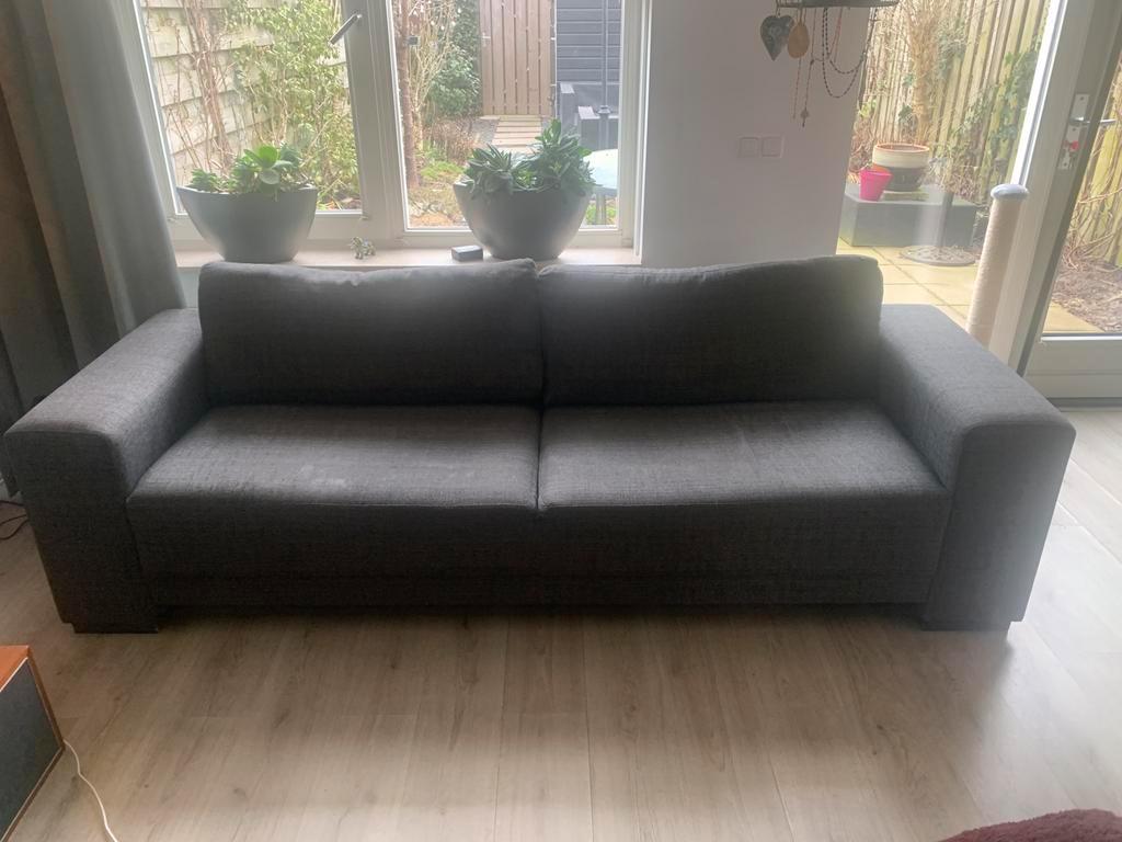 Stevige gemeleerde grijze stof, perfect bestand tegen huisdieren, kan zeker nog een goede ronde mee. Per direct ophalen, gaat na het weekend weg! 250 Breed, 85 diep, 190 breed zitgedeelte, 54 diepte z