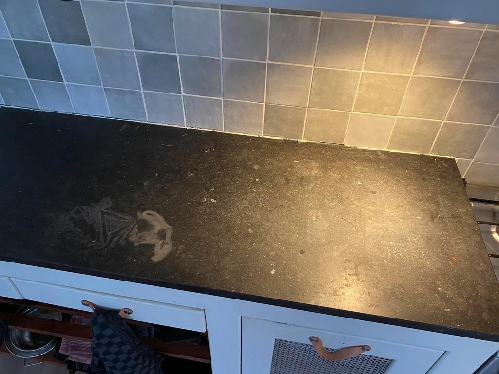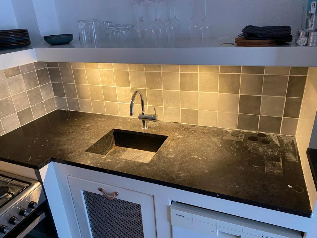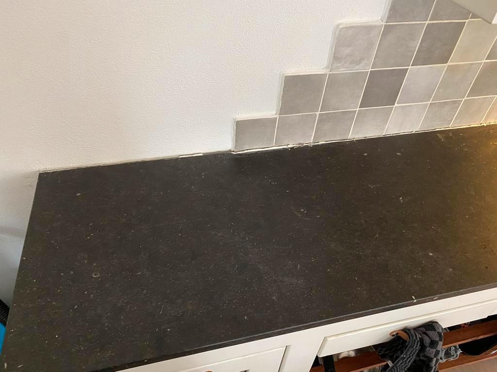 Twee hardstenen aanrechtbladen, 3cm dik. Een deel is 60 x 238 cm, het andere deel is 68 x 197 cm en bevat een spoelbak van 44 x 34 cm. Gratis op te halen in weekend van 14 maart (of in overleg) voorwa