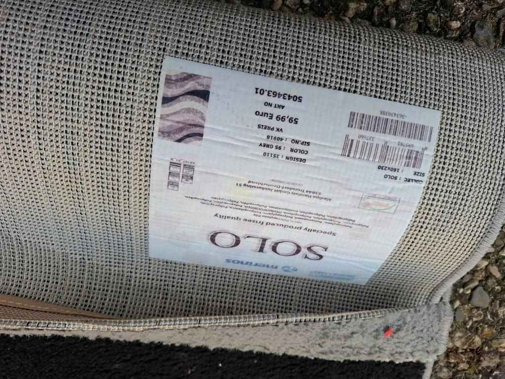 Een mooi vloerkleed met een modern design. Het kleed is grijs, zwart en wit van kleur. Het kleed is gebruikt, maar in goede staat. Afmetingen zijn ongeveer 160x230 cm. Zie foto''s voor details.