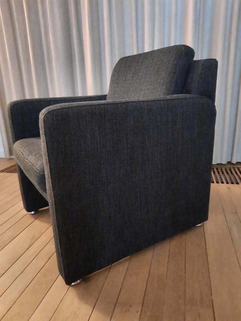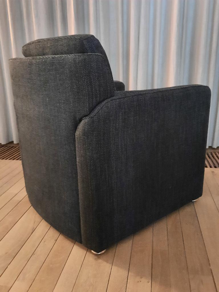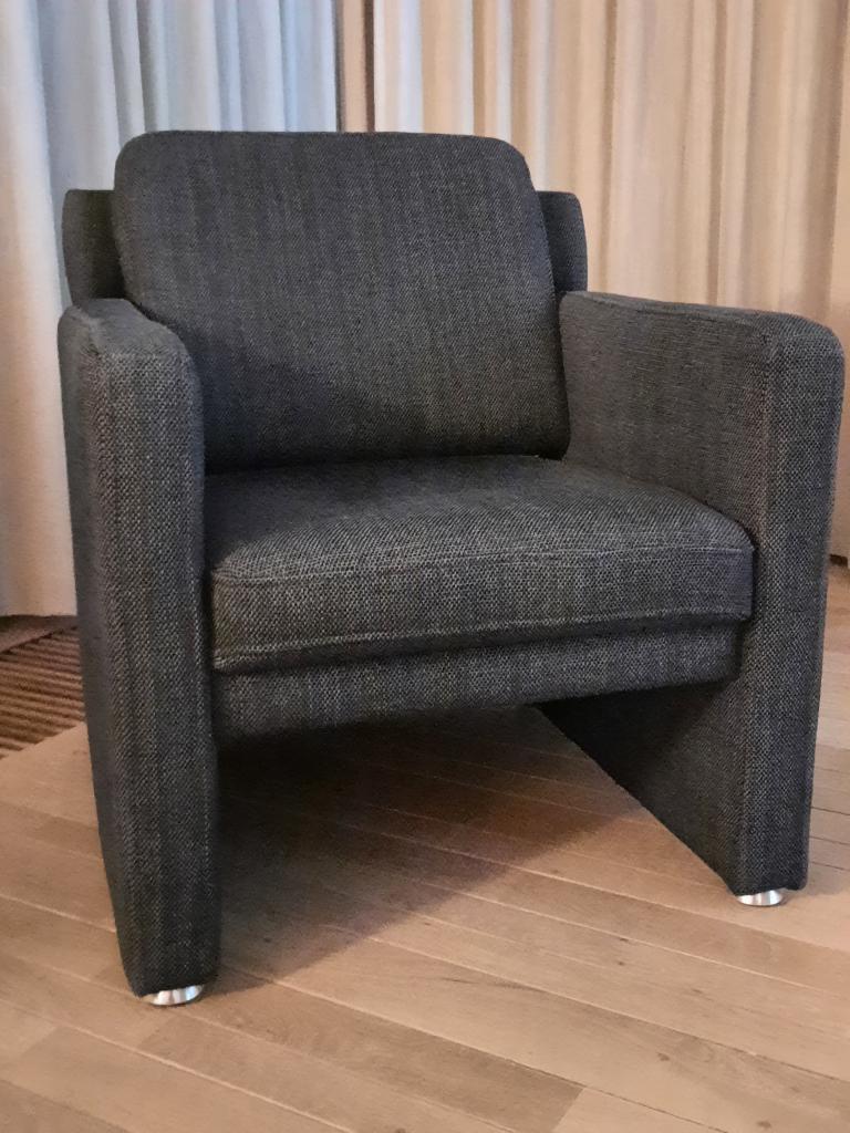 Deze stoel mag je gratis ophalen. Geen beschadigingen. Comfortabele zit. Afmetingen: zithoogte: 43 cm zit diepte: 50 cm rug hoogte: 85 cm kleur: donker grijs totale omvang van de stoel 74 x 74 cm. Nie
