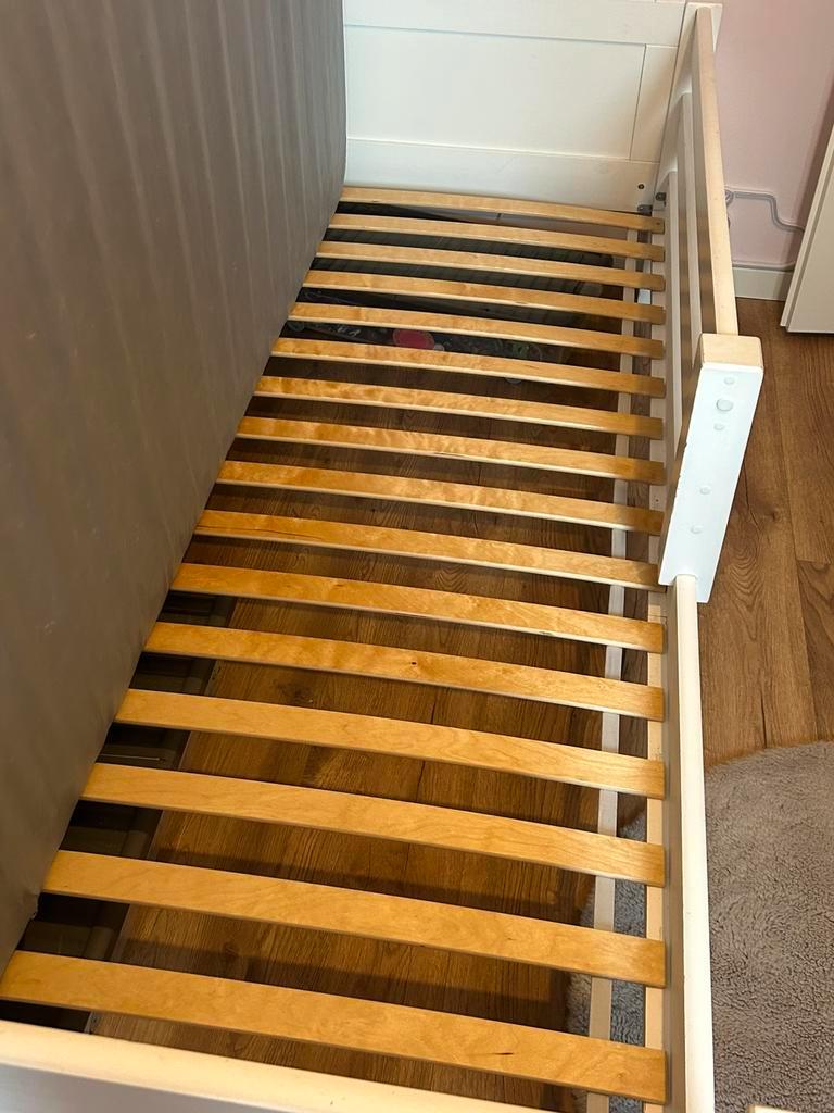 Flexa world bed bedframe 99,5 x 113,5 cm zijsteun kan er af met gebruikerssporen handleiding aanwezig bed is gratis! Eventueel met valevåg ikea matras 90x200cm november 2024 aangekocht zeer goede staa