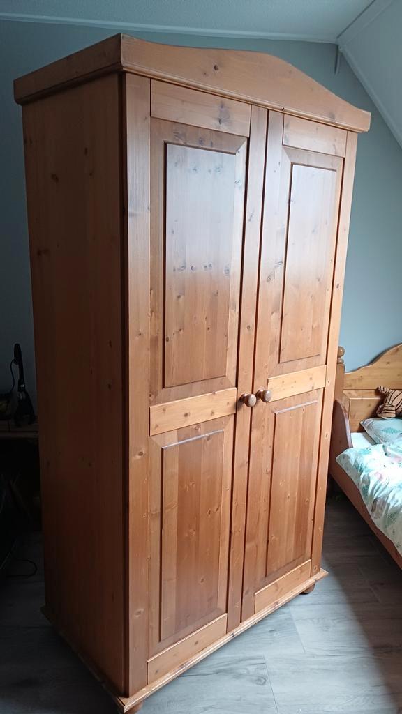 Degelijke grenen hang/leg kast, 198 cm hoog, 103 cm breedt en 58,5 cm diep.de conditie is gebruikte staat. Kan gedemonteerd afgehaald worden.