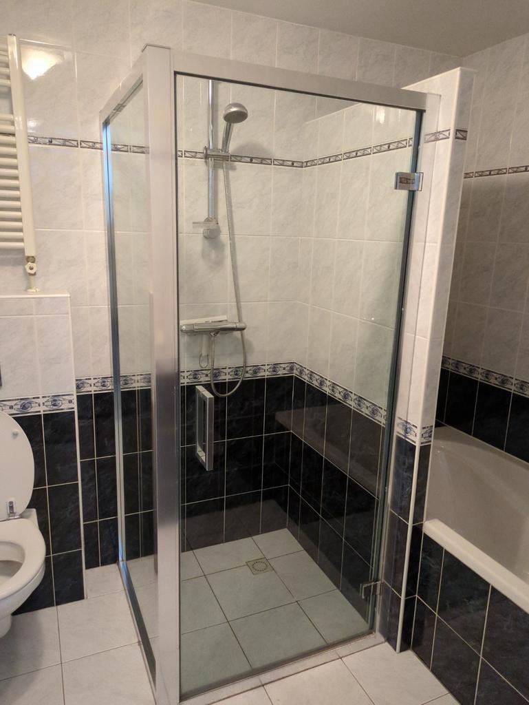 Volledige badkamer met douche, bad, wastafel en toilet. In goede staat en klaar voor gebruik. Ideaal voor een snelle renovatie of nieuwbouwproject. Gaat maandag weg dus moet 22 of 23 februari opgehaal