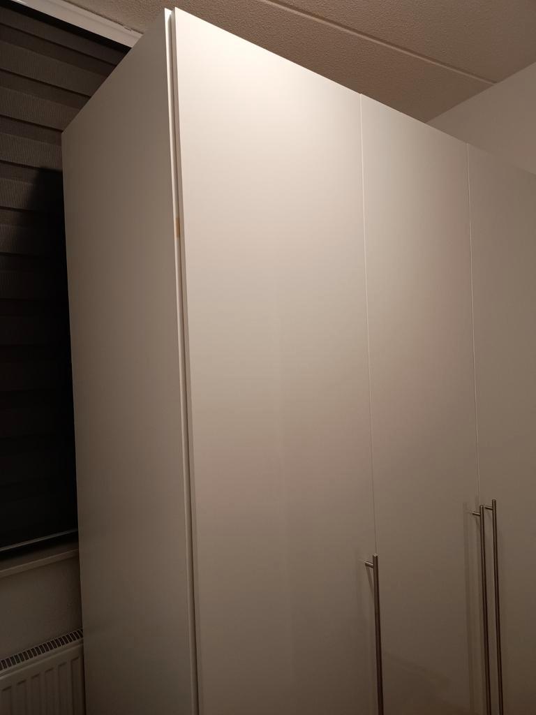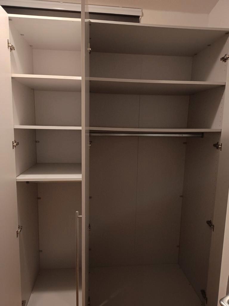 Stevige 3 deurs linnenkast met 2 hanggedeelten en planken. Robuust bevestigingsmateriaal. Scharnieren hebben ideale kliksluiting. Geen beschadigingen. Hoogte 217 cm breedte 148 cm diepte 56 cm