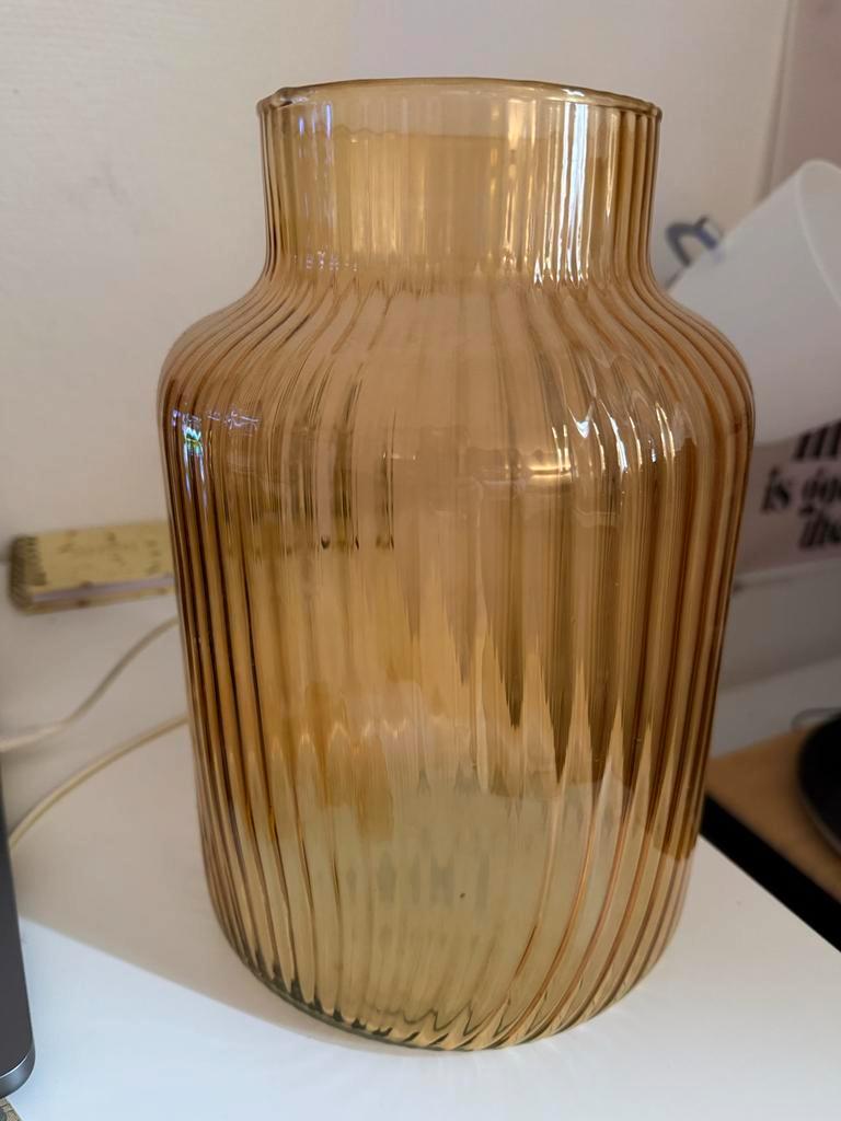 Gratis af te halen! Amberkleurige glazen vaas met ribbelstructuur. Staat leuk met of zonder bloemen. Ik geef hem weg omdat ik ga verhuizen.