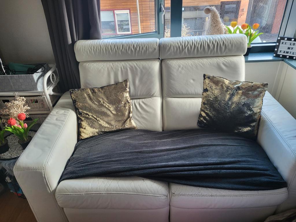 Gratis met uitklapfunctie en losse hoofdsteunen. In 2 delen te vervoeren. Alleen bekleding niet zo mooi meer is wel echt leer