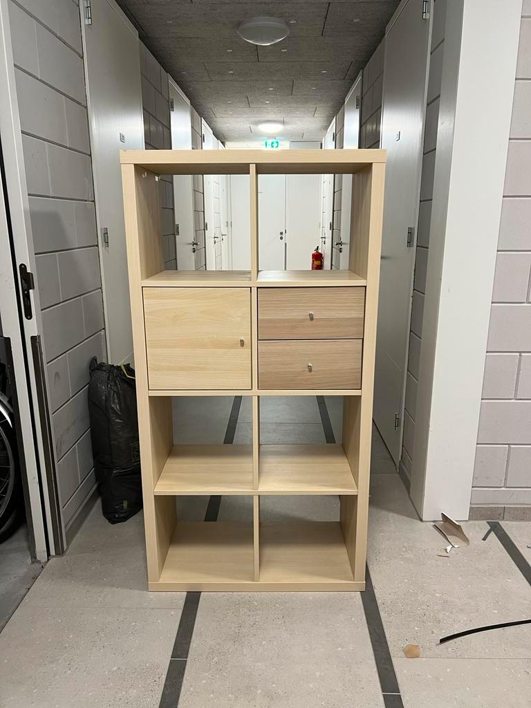 Gratis af te halen: ikea kallax kast, bruin, 4x2 vakken. Inclusief een deurtje en lades. Ziet er nog zo goed als nieuw uit. Wegens verandering interieur overbodig geworden.