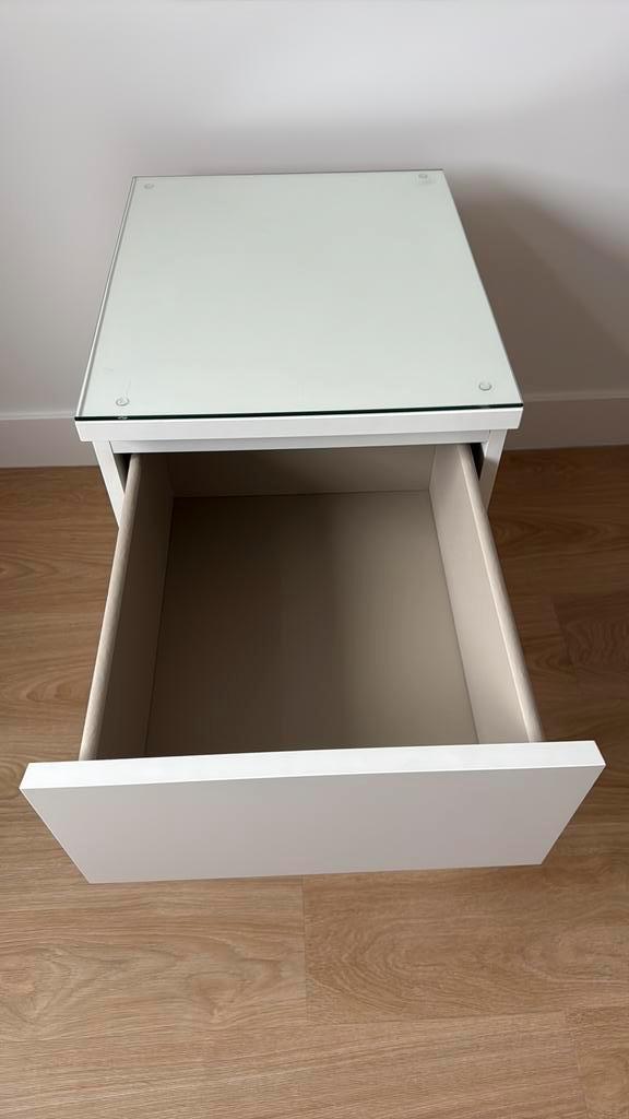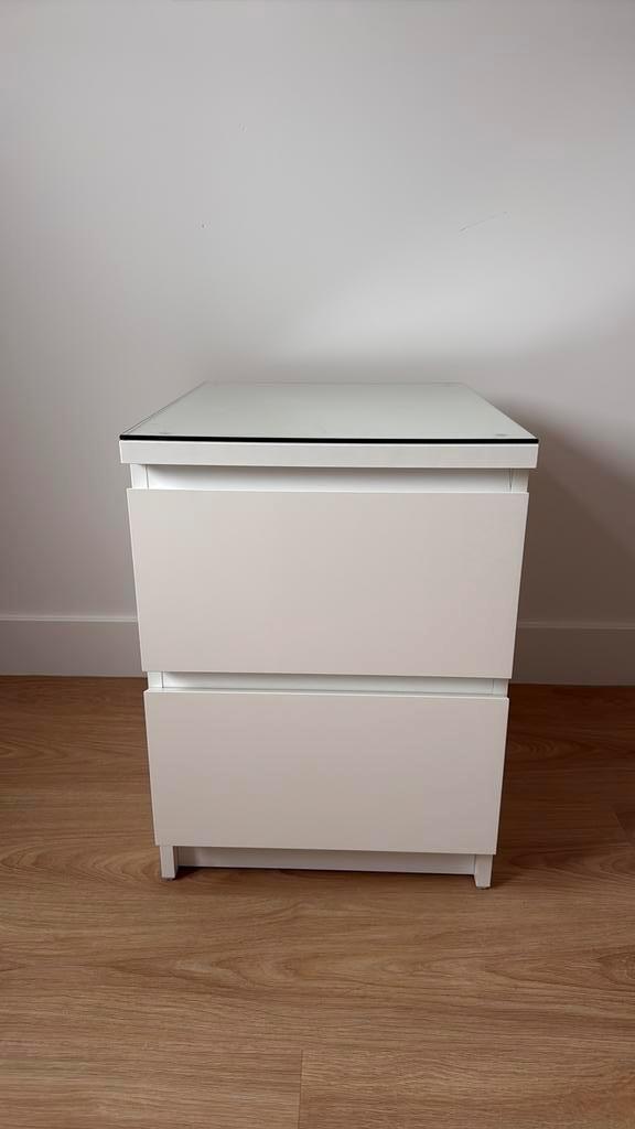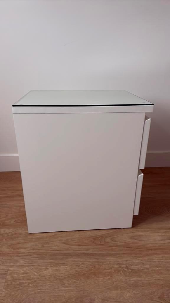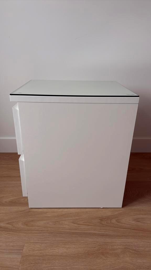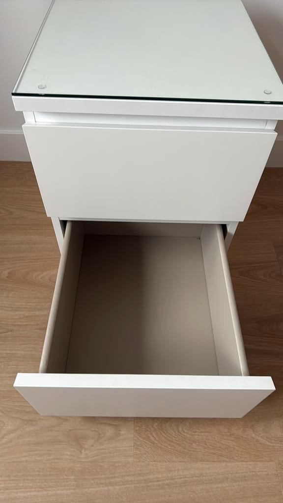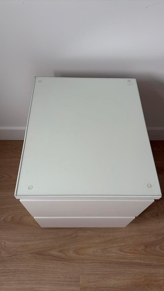 Zeer net ladekastje met 2 lades van de ikea malm serie. Niet beschadigd. Inclusief glasplaat op bovenkant. Zie foto’s voor afmetingen. €15 vaste prijs